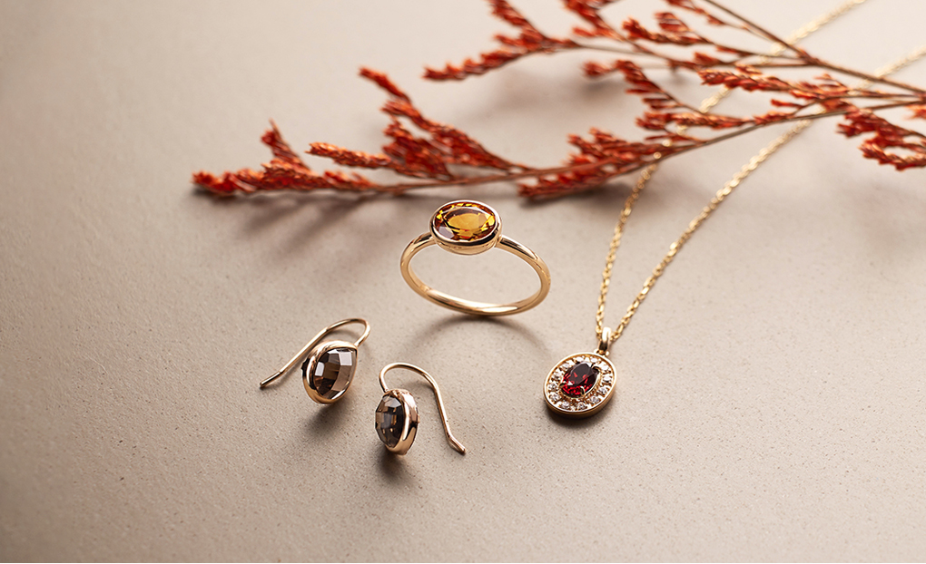梢の葉が色づき、秋の訪れを感じられる頃。 趣深い季節を彩るカラーストーンジュエリーは コーディネートのアクセントとして加えたいアイテム。 |