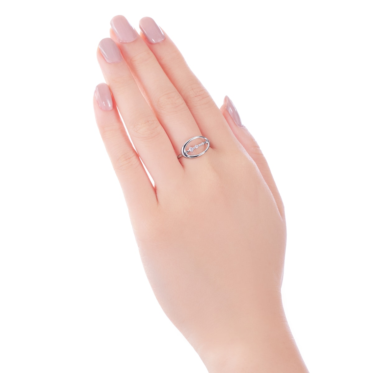 サークルの中にセットされた3石のダイヤモンドが、品よく煌めき華やかな印象に。