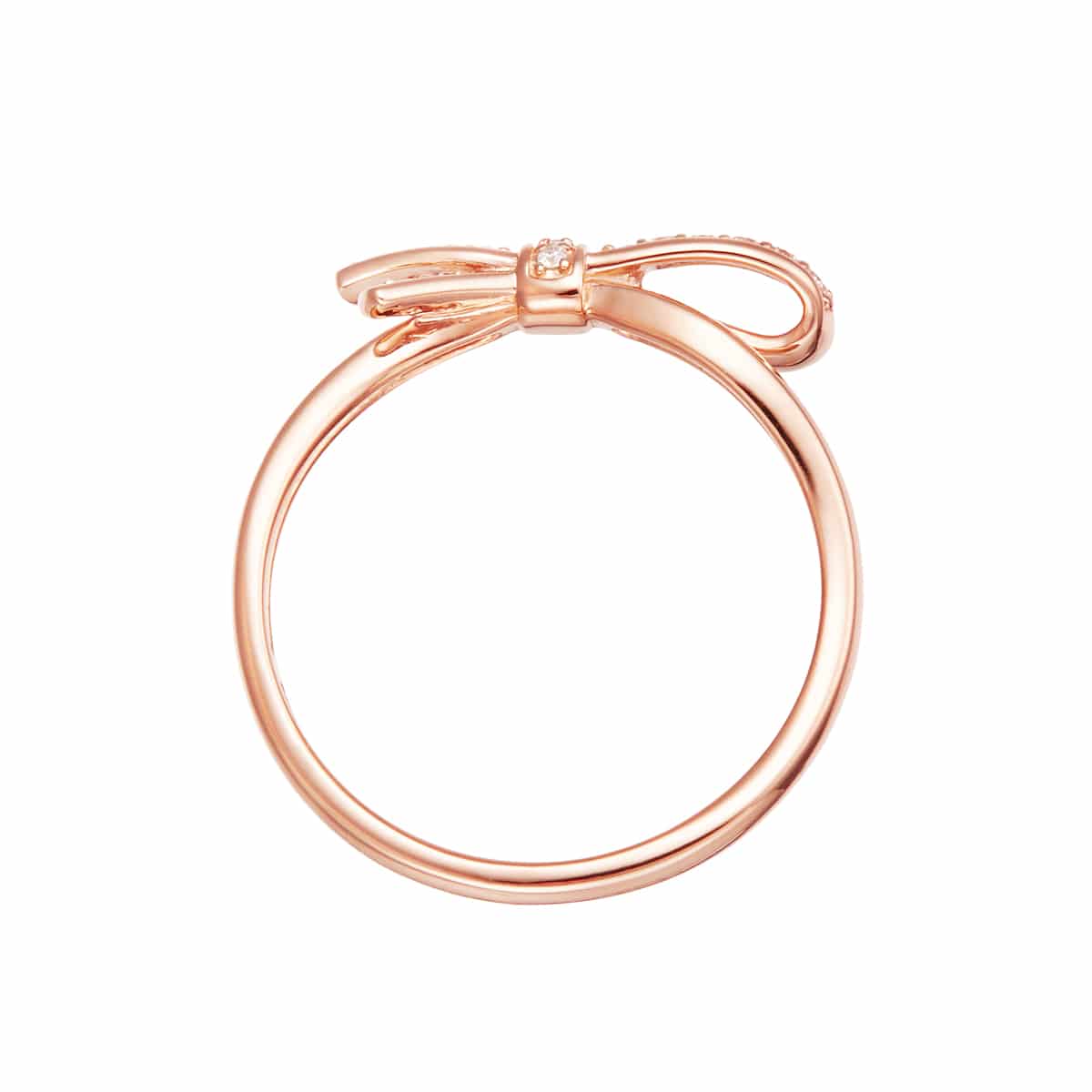 ふんだんに配したダイヤモンドの華やかな煌めきと、すっきりしたラインでリボンの甘さを抑え、スタイリッシュな印象に仕上げました。