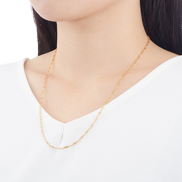 シンプルなチェーンのネックレスはオフィスでもさらりとつけやすいアイテムです。