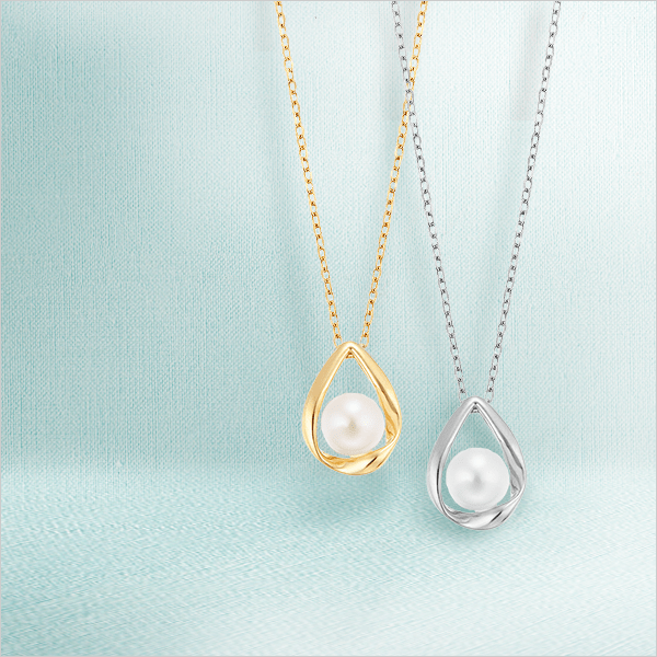 人魚の涙と言われる「パール(真珠)」を、しずくモチーフに昇華した美しいデザインは、身に着ける女性の品の良さをさりげなく引き立てます。